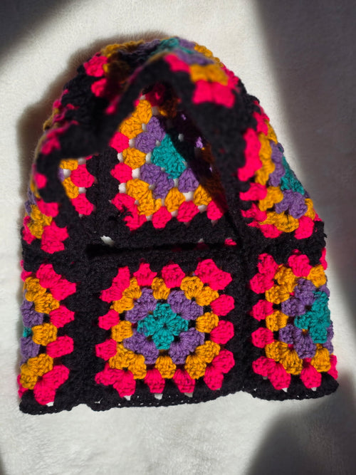 Beige Confetti & Onyx Black Slouchy Beanie